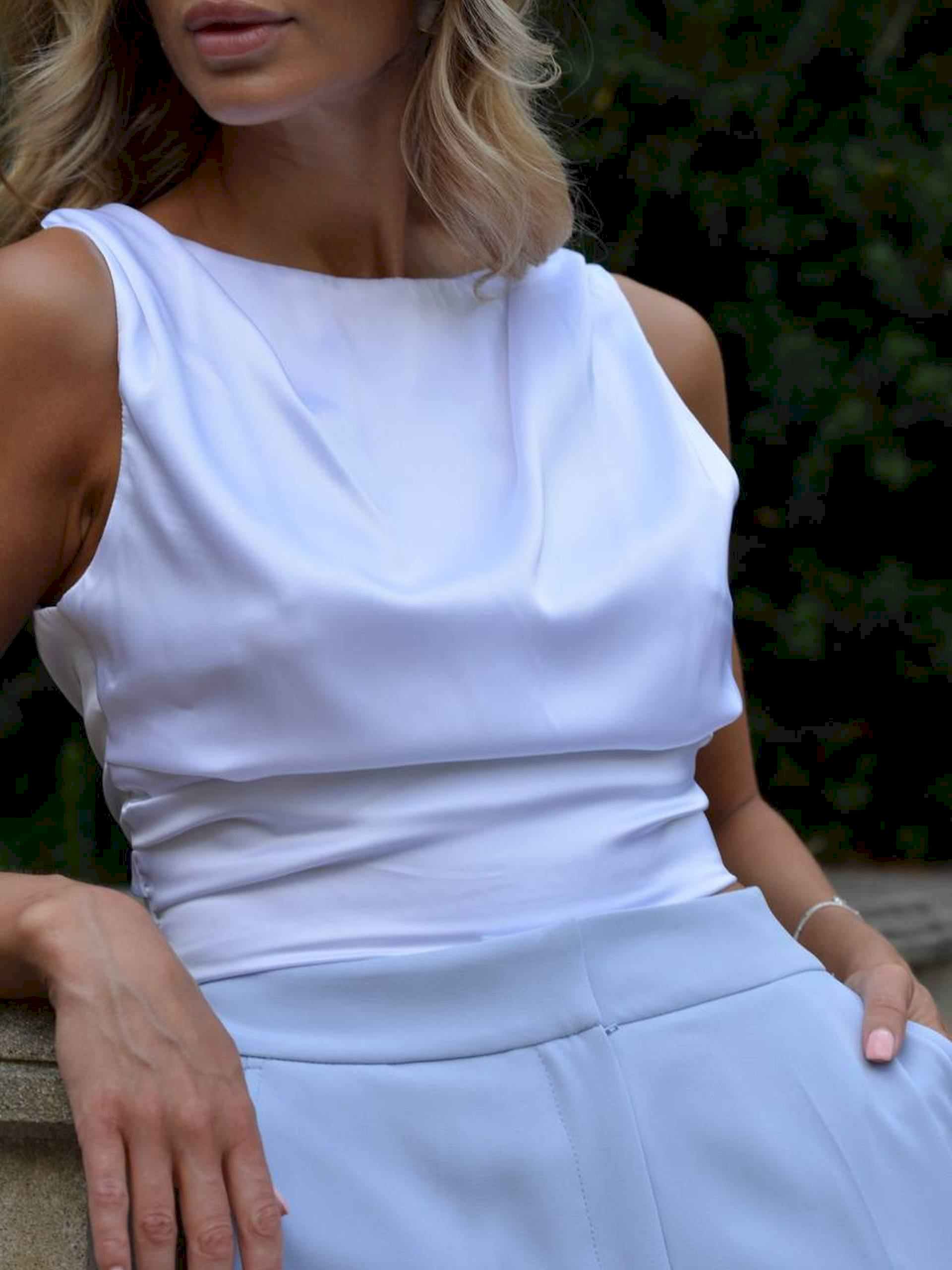 Елегантний і стильний шовковий топ додає нотку розкоші до будь-якого образу. Виготовлений з високоякісного шовку, цей топ відрізняється м'якістю та приємним відчуттям на шкірі. Його легка текстура забезпечує комфорт протягом усього дня, а класичний крій робить його універсальним вибором для різних випадків.